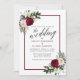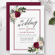 Script de Caligrafia Moderna, Watercolor Floral Elegante, Greenery, Bourgundy Frame Wedding Invitation inclui peonias, folhas de eucalipto e outros belos verdes. Burgundy e Black Text.