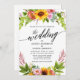 Script de Caligrafia Moderna, Watercolor Sunflower Boho Floral com Rosas, Peonies e Convite para Casamento Verde.