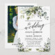 Roteiro de Caligrafia Moderno, Cartão de Convite para Casamento de Verde Botânico Elegante Watercolor inclui folhas de eucalipto, folhagem botânica verde, folhas azuis empoeiradas e outros belos lençóis botânicos. Foto de volta.