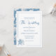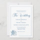 This wedding invitation is crafted in a romantic, refined style, ideal for celebrating your special day. The subtle dusty blue palette fits well with the winter season, while subtle white accents bring a sense of clarity and elegance. The design features a delicate floral print on the back, complemented by a single, line art blossom on the front that mirrors the artwork behind it, creating a cohesive and artistic look. A calligraphy script title adds a graceful, elevated touch. As a central element of your wedding stationery, this invitation sets the tone for the entire collection with its understated beauty and floral charm. All text elements in this elegant template can be easily edited - names, date, venue, and event details.