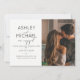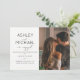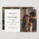Este belo e moderno calilGRAPHY TYPOGRAPHY 2 Photo Wedding Save the Date Invitation apresenta um script de caligrafia preto-e-branco e um design de convite para fontes sans serif de todos os bonés na frente, com sua foto de orientação vertical/retrato à direita. A parte traseira do convite apresenta a foto horizontal do noivado com sangramento de cheio. Um belo convite!
