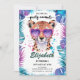 Calling all party animals! Get ready for a wild celebration for Elizabeth, who is turning four! This fun and vibrant invitation features a super cool watercolor leopard rocking a pair of pink heart-shaped sunglasses. Framed by a border of lush, tropical leaves in shades of teal, blue, and purple, this design is perfect for a wild, jungle, or safari-themed birthday bash. The playful script and colorful paint splatters add to the fun, festive feel. All party details are fully customizable.