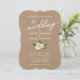 Script de Caligrafia Elegante Moderno, Casamento Floral Branco Verde de Watercolor Convite Kraft
