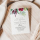 Este convite de casamento floral tropical da caligrafia é perfeito para um casamento rústico. Esse design pintado à mão encantador apresenta uma pincelada precioso, flores roxas e folhagem verde bem arrumada em buquês elegantes.