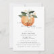 Este convite de chá de fraldas "Um pouco de beleza está a caminho" apresenta as flores brancas de cor-de-água laranja e um doce design neutro em termos de gênero.