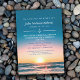Convite para serviço de memória, perfeito para um funeral náutico, com uma foto de um pôr do sol sobre o oceano. Adicione uma foto do seu amado nas costas.