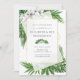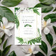 Trendy sage folhas tropicais verdes e brancas de cor d'água e nozes de magnólias brancas, convite de almoço com quadro geométrico dourado.