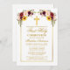 Rosas Elegantes de Aquarela O primeiro convite à comunidade floral inclui rosas cor-de-rosa, rosas vermelhas, rosas de entrelaçamento, girassóis e vegetação botânica. Dourado quadro. Dourada Cruz.