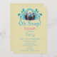 Oh Snap! É um convite de festa de aniversário com um design adorável em aquarela para quem gosta de fotografia. Uma câmera preta rodeada por folhas azuis e borboletas em um arranjo decorativo bonito.