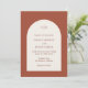 Um convite moderno para casamento, com seu monograma junto com seu dentro de detalhes de um arco colorido creme sobre fundo de ferrugem. Esta simples, mas elegante design com cores do deserto terrestre é excelente para um casamento no estilo boho no verão ou outono.