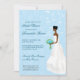 Uma noiva caminha serenamente pelo corredor neste adorável chá de panela. Ela encara o texto personalizado na frente e caminhou pela página ao contrário. O fundo é um bonito padrão azul úmido sobreposto com videiras florais inchadas, enquanto o buquê e os brincos da noiva correspondem ao azul. Disponível em cores alternativas com produtos e opções correspondentes para diferentes etnias de noivas.