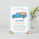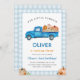 Watercolor Blue Truck & Pumpkin Fall Fazenda Blue Gingham Convite de Aniversário