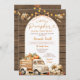 Chá de fraldas de Abóbora Editável Convite Floral de Madeira Rústica, Caminhão de Abóbora outono Uma Pequena Pumpkin Doce Está a caminho Convidar ZB1