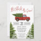 Vamos Celebra a Estação! Este belo caminhão vermelho com um convite de festas temático da árvore de Natal é perfeito para dar o tom ao seu evento!