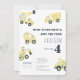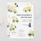 Tornar o quarto aniversário do seu filho inesquecível com este convite de caminhão de construção moderno. O design apresenta ilustrações aquáticas de caminhões de lixões amarelos, em um simples fazer branco de fundo, é divertido e encantador, enquanto a frase "Dump All and join the staff" acrescenta um elemento lúdico ao cartão. Use as ferramentas de design para personalizar o texto, as fontes e as cores! Também disponível como download digital para convites instantâneos.