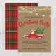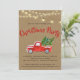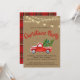 Caminhão de Natal Uma Feliz Pequena Convite de festas de Natal - Nossa Convite de festas de Natal é uma maneira divertida de enviar seus convites de Celebração nesta temporada de festas. O convite apresenta uma aquarela, a carrinha vermelha de colheita é carregando árvores de Natal frescas da fazenda. Uma corda de luzes de cordas vintage está pendurada por cima. A parte de trás do convite é na moda vermelho e xadrez verde. O convite faz parte de uma coleção. Projetada por Beverly Arena-Bainbridge Homespun Cottage Designs E: homespuncottagedesigns@gmail.com