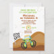 Caminhão Verde 4º Convites de Corrida de Aniversário. O convidado tem um caminhão monstro numa colina de terra com uma bandeira branca e preta. Personalize com os detalhes do seu partido.