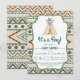 Convites de churrasco de bebê tribal para meninos com teepee e flechas em um fundo tribal azteca azul turquesa e marrom. Você pode personalizar facilmente este convite de churrasco de bebê tribal fofo para o seu evento, simplesmente adicionando seus detalhes. Este é um design impresso sem brilho real.