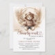 Design de convite para Chás de fraldas apresenta o buquê Lavish de gramíneas tropicais de pampas em arco de bico e folhas de palma de fã secas envolve elegantemente o bebê bonitinho vestindo camisola marrom-claro neutro, como se fosse um abraço de mamãe macio.