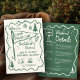 Prepare-se para a aventura com este convite de festa de solteira de acampamento e itinerário de fim de semana. A frente apresenta ilustrações de linhagens caprichosas de elementos essenciais de acampamento — uma tenda, mochila, fogueira e árvores rústicas — configurando perfeitamente a cena para uma confortável fuga ao ar livre. No verso, um padrão moderno de faixas verdes enquadra seu itinerário detalhado, mantendo convidados organizados para as festividades do fim de semana. Ideal para um retiro da cabine, uma viagem de óculos ou uma celebração rústica de hospedagem, este convite combina vibrações lúdicas com detalhes práticos em um único design.