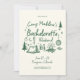 Prepare-se para a aventura com este convite de festa de solteira de acampamento e itinerário de fim de semana. A frente apresenta ilustrações de linhagens caprichosas de elementos essenciais de acampamento — uma tenda, mochila, fogueira e árvores rústicas — configurando perfeitamente a cena para uma confortável fuga ao ar livre. No verso, um padrão moderno de faixas verdes enquadra seu itinerário detalhado, mantendo convidados organizados para as festividades do fim de semana. Ideal para um retiro da cabine, uma viagem de óculos ou uma celebração rústica de hospedagem, este convite combina vibrações lúdicas com detalhes práticos em um único design.