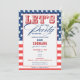 Marque o início da jornada oficial do seu candidato com este convite de lançamento da Campanha de Kickoff com o Burro do Partido Democrata no verso. Com um design arrojado em vermelho, branco e azul com destaques em letra cursiva, este convite combina formalidade com energia patriótica. Perfeito para jantares de arrecadação de fundos, galas de lançamento de campanha ou banquetes de apreciação de apoiadores, é totalmente personalizável. Adicione o nome do candidato, cargo, data, local e detalhes de RSVP. No verso, o Burro Democrata está fazendo as regras. Você também pode ter um código QR personalizado, para alcance de eleitores, e um chamado à ação para digitalizar e salvar o código QR para seguir seu candidato favorito.