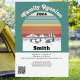 Convidado para o tema do reencontro familiar rústico, vintage e retro acampamento. Apresenta uma montanha cênica, rio, floresta e cabana completos com estilo solar retrô antigo. Arte de linha e tipografia divertida. Organize um final de semana divertido para fugir onde você possa se reconectar com seu clã em uma reunião de família. Adicione um código QR que se vincule ao seu campo, mapa ou número de telefone. Há espaço no verso para mais instruções ou detalhes para compartilhar.