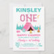 Campanha Feliz Rosa Moderno Testemunhou Convite para primeiros aniversarios Meninas coloridas acampando o primeiro convite de aniversário com uma grande palavra multicolorido, tenda rosa, fogo no acampamento, cartaz e muito mais. Ideal para acampar a primeira festa de aniversário para uma garota.