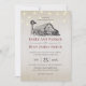 Quadrinhos de fazenda, madeira rústica e luzes de cordas, celeiro de campo rústico com convite para moinhos de vento. O convite para o casamento de desenho de fazenda preto-e-branco com texto de estilo tipográfico e cor de sotaque editável tem um estilo elegante e encantador.