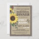 Os girassóis russos do país, madeira de celeiro e cartazes ocidentais inspirados no convite para jantas de ensaio são certamente bem-vindos a convidados para a festa de janto de ensaio de casamento rústico perfeita. O texto e as fontes editáveis permitem que você crie uma nova visão sobre este convite de festas criativo.