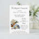 Convite a um campout do quintal. Cartão decorado com guaxinim e uma barraca de acampamento. Texto customizável