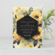 A dramatic and artistic design sets a sophisticated tone for your special day. Luminous canary yellow blossoms pop against a backdrop of deep, shadowy foliage and a soft buttercup-hued background. Lush, painterly blooms, reminiscent of peonies or chrysanthemums, create a bold and romantic botanical display. This arrangement balances vibrant light with moody darkness for an unforgettable aesthetic.