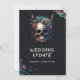 Prepare-se para agitar o seu casamento com esta tatuagem, atualização de casamento gótica ou cartão de adiamento de casamento! Este cartão de atualização de casamento é perfeito para os casais precisarem informar seus convidados sobre a mudança de planos de casamento. O design preto e branco apresenta um intrincado crânio, rosas, flores e escritos de caligrafia que exaltam um senso de romance escuro. Prepare-se para fazer uma declaração com os cartões de anúncio do casamento.