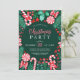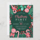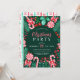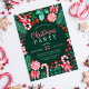 Este design de Natal apresenta canas doces de hortelã-pimenta de cor aquosa, lipops de hortelã-pimenta e canas doces, muitos verdes de inverno como a groselha e os vermelhos, agulhas de pinheiros, arcos vermelhos, florais vermelhos e muito mais sobre fundo verde-escuro. Você pode personalizar todo o texto do seu evento. Na parte de trás do convite está um padrão vermelho e verde de distribuição de doces. Veja toda a coleção correspondente.