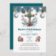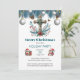 Convide os entes queridos para uma reunião de férias com este convite encantador. Apresentando uma cruz decorada com uma bengala doce, poinsettia vermelha, e Holly, é festiva e divertida. Dois ouriços amigáveis nos chapéus de Santa, um carregando de presente e outro de chocolate quente, completam a cena alegre. Personalize os detalhes do evento para um convite de Natal sincero.