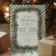 A festive and elegant Christmas card wrapped in watercolor candy canes, holly berries, and evergreen sprigs. The soft green diagonal stripe background adds a modern twist to this classic holiday wreath design — perfect for spreading cozy, cheerful Christmas spirit with timeless charm.