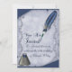 Um fundo azul escuro com um pergaminho decorado azul claro. O texto "Você é Convidado" com uma caneta azul de pena terminando o último traço, o tinteiro prateado na parte inferior. Um modelo de convite elegante e personalizável para aniversários especiais, aniversários de casamento, casamentos, cerimônias de formatura e todas as outras ocasiões festivas.