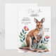 Uma canguru mãe fica ereta em um ambiente natural, com seu filhote espiando de sua bolsa. O canguru bebê é pequeno e curioso, sua cabeça apenas visível, enquanto a mãe parece protetora e calma. Rodeados por vegetação, eles personificam o vínculo estreito entre mãe e filho no reino animal. A cena parece pacífica e nutritiva, capturando um momento de conexão na natureza.