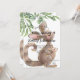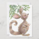 Detalhes do chá de fraldas são um modelo fácil de editar em fontes contrastantes em uma placa que apresenta uma adorável cor d'água, Aussie kangaroo mamãe e baby, tocada com realces dourados. A folhagem pintada por aquarelas está em cantos diagonais. A parte de trás do cartão apresenta a mesma encantadora mãe de kanga e joey, ligeiramente maior.