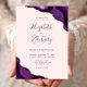 Uma design de cor d'água púrpura, aparada com brilho falso prateado, aparece em dois cantos deste elegante design. Personalize-o com os nomes dos casais em cinzas de carvão que escrevem o script de manuscrito sobre um grande e grande computador. Adicione os detalhes do casamento em quadrinhos e fontes itálicas em um fundo cor-de-rosa. O verso apresenta um design de agata prateado e roxo correspondente.