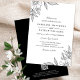 Este belo convite para o casamento apresenta um detalhado design floral em preto nos cantos superior esquerdo e inferior direito, criando uma aparência simples e chique. Um esquema de cores preto e branco dá a esses convites uma sensação delicada, mas moderna. Simplesmente personalize o texto para seu dia especial! A parte traseira contém um modelo de código QR para simples rsvps e link de site de casamento. Para obter informações sobre design ou produtos, entre em contato comigo (Tracey) em orabellaprints@outlook.com.