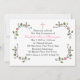 Convite de fotografia religioso com bonito cantos florais cor-de-rosa sobre fundo branco com pequeno sotaque rosa. Exibido como um convite da Primeira Comunhão, mas adequado para qualquer evento cristão.