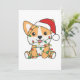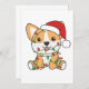 O córgi do Natal com luzes de fadas. Animais engraçados com presentes e neve nas férias. Uma doce saudação de Natal. Os cães são animais bonitos e perfeitos para o Natal.