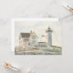 In this watercolor illustration of Nubble Light, brilliant morning light highlights Cape Neddick’s iconic lighthouse in soft yellow. Situated on the bright green grass and gray stone of Nubble Island, Cape Neddick Lighthouse is rendered in stunning detail, from the decorative eaves on the lightkeeper’s house to the light’s white picket fence. An American flag flutters in a stiff ocean breeze, capturing the essence of a refreshing morning on the coast of York, Maine. Visitors and locals alike will appreciate the realism and atmosphere of this watercolor rendering of Nubble Light.