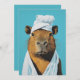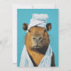 Um retrato charmoso e caprichoso de uma capybara, o maior roedor do mundo, vestida com um traje tipo spa. O animal é enfiado numa toalha branca com outra envolta em torno da cabeça, colocada contra um fundo azul-suave. A expressão calma e serena de capybara dá a impressão de que está a desfrutar de um momento de relaxamento, acrescentando um toque de humor e calor à cena. O trabalho detalhado de bruxaria põe em evidência o pelo de capybara e a textura macia das toalhas, fazer esta trabalho de arte de uma peça deliciosa e leve.