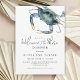 O convite perfeito para jantar o ensaio de casamento para um janto ao longo da costa, este design apresenta um caranguejo azul no canto superior em aquarelas vibrantes. O texto do convite é moderno com uma elegância casual que é saborosa e hospitaleira. Personalize o modelo de texto com seus detalhes específicos. Este convite é uma excelente escolha para jantadas insulares em zonas costeiras, ou jantadas onde os frutos do mar são servidos.