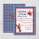 Uma maneira divertida de celebrar o Verão, com lagosta e caranguejo fervendo na praia! uma ilustração bonito e divertida de um caranguejo e de uma lagosta, com fundo de gingham!