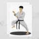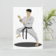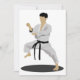 Ataca uma pose de karatê incrível como esta. Esta pessoa está lá em uma roupa de karatê e eles estão em uma pose de karatê. Este caratê está vestindo um cinto preto. Este karate pose design parece excelente nesses convites