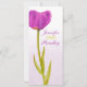 Cardápio de jantar da recepção de casamento de tulipa roxa pintada de primavera única de dois lados. Ideal para suas mesas de casamento com tulipas roxas ou flores de primavera Desenho e pintura de arte de tulipa em aquarela por Sarah Trett.