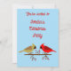 Este convite de festas de Natal divertido é totalmente personalizável. O design apresenta um bonito par de Cardinais de Norte. O pássaro macho é vermelho vivo com uma crista vermelha na cabeça e a ave fêmea é uma cor amarela acastanhada com um pouco de vermelho em suas asas e cauda. Ambos os pássaros têm um bico vermelho. Os pássaros estão parados num galho castanho coberto por um fazer festivo de frutas vermelhas, este é um belo design de Natal, especialmente para casais. Há texto personalizado na frente e no verso para que você possa personalizar esses convites, como quiser.